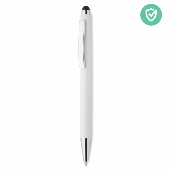 Kemični svinčnik iz ABS-a z antibakterijskim ohišjem. To pisalo ima poseben antibakterijski tulec, ki vsebuje poseben dodatek (nano srebro), ki preprečuje, da bi se bakterije naselile na površini pisala. S konico pisala lahko preprosto upravljate zaslone na dotik, ne da bi morali uporabiti prste. ISO 22196.