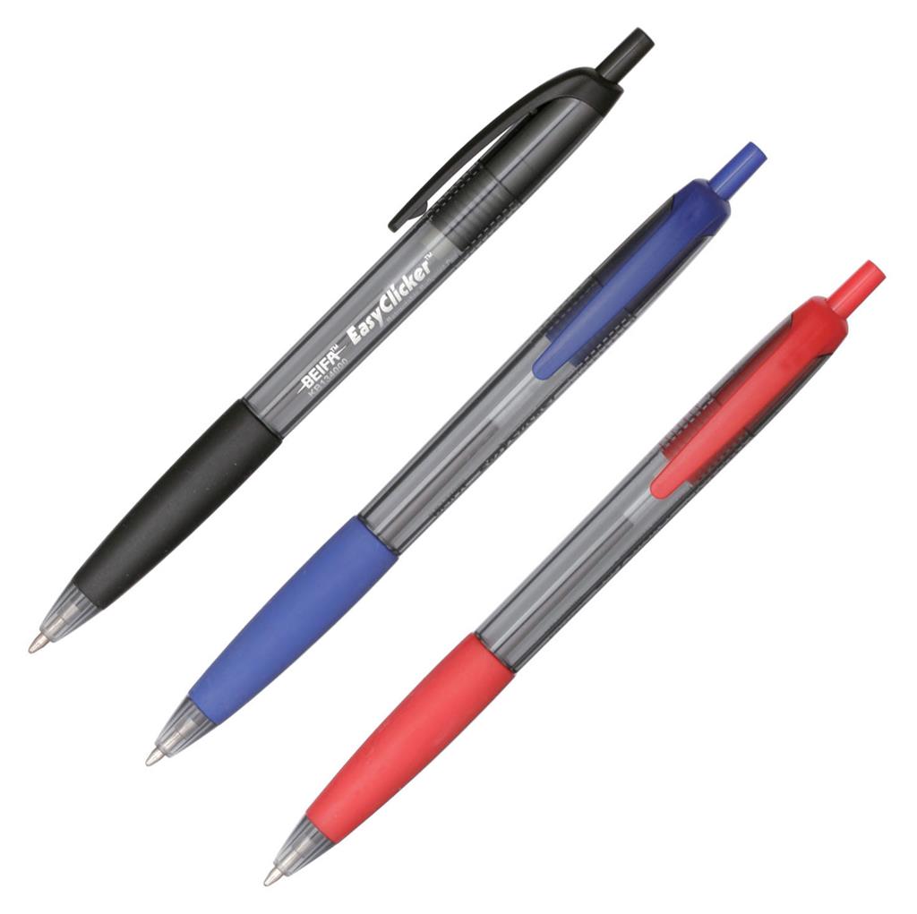 Kvalitetni cenovno ugodni kemični svinčniki s pritisnim mehanizmom in gumiranim držalom za boljši oprijem. Transparentno ohišje omogoča sledenje porabi črnila.