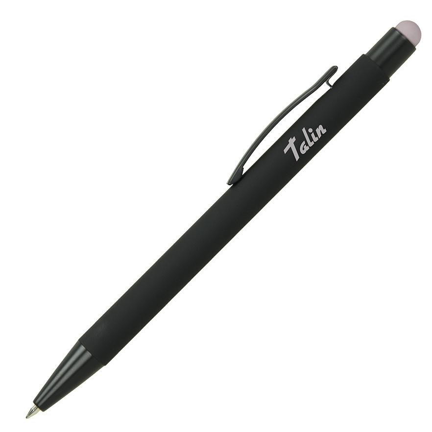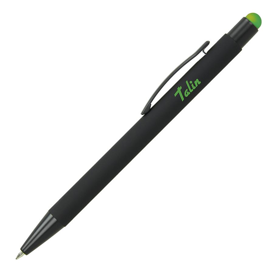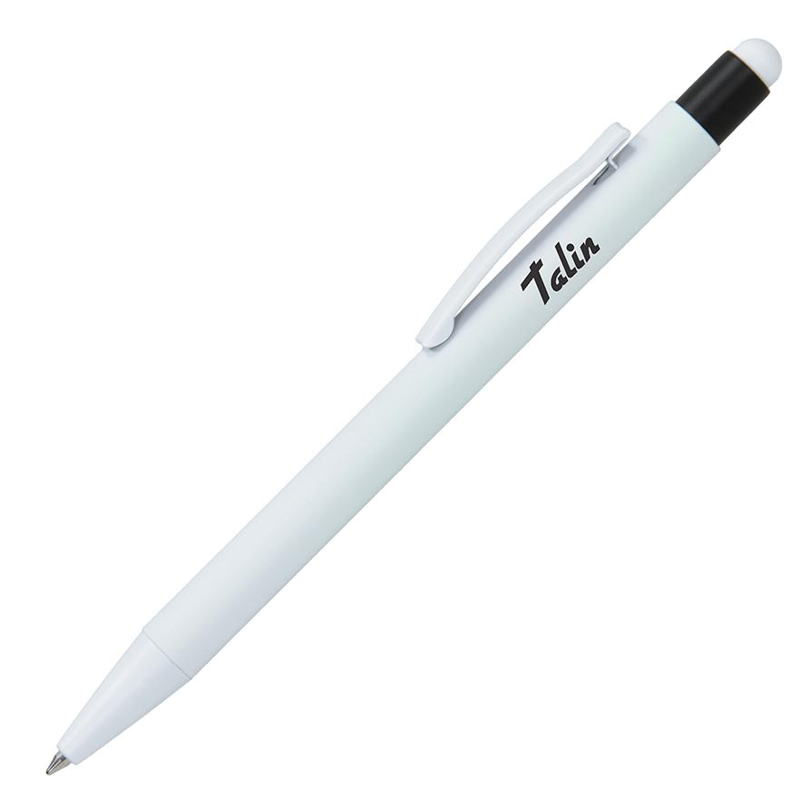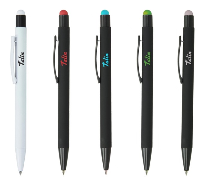 Kovinski kemični svinčnik TALIN z aluksiranim spodnjim slojem v barvi gumijaste kapice, kar omogoči zelo lično barvno promo predstavitev. Kapica ima dodatno funkcijo pisanja na zaslon.