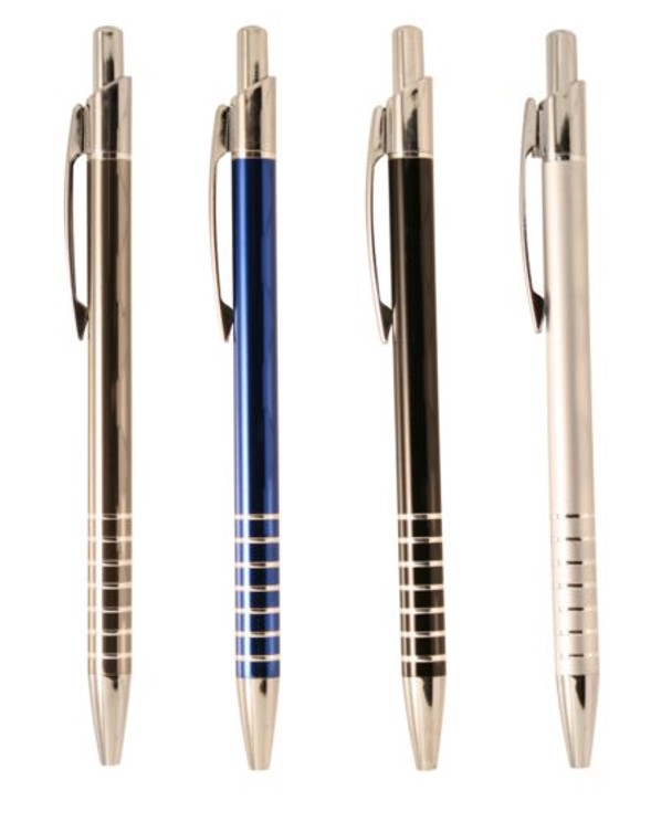 Kvalitetni cenovno ugodni kemični svinčniki s kovinsko sponko, aluminijastim ohišjem in potisnim mehanizmom, namenjeni za vsakdanjo rabo.