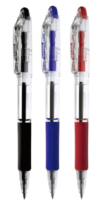 Kvalitetni kemični svinčniki s kovinsko sponko, plastičnim ohišjem, potisnim mehanizmom in ergonomsko oblikovanim držalom, namenjeni za vsakdanjo rabo. Transparentno ohišje omogoča sledenje porabe črnila.