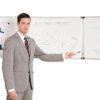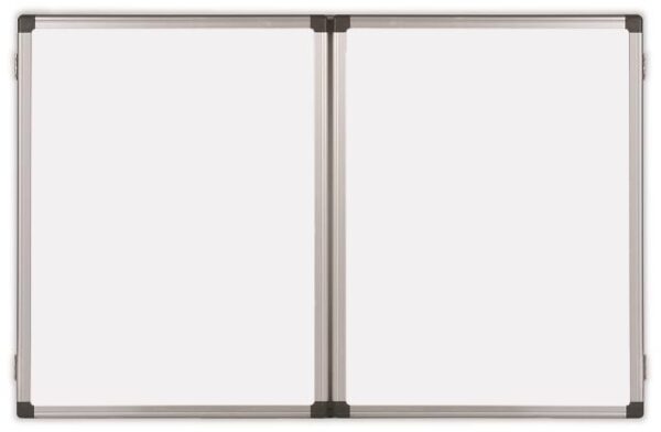 Kvalitetna bela tridelna magnetna tabla piši-briši Bi-Office Maya Trio s trpežno lakirano površino, aluminijastim okvirjem in plastičnimi vogali. Lakirana pisalna površina omogoča z rednim čiščenjem dolgoletno neproblematično uporabo. Kaširana hrbtna stran onemogoča zvjijanje table. Priložen je pribor za montažo ter polica za pisala in pribor. Zložljiva tabla omogoča trikrat večjo uporabno površino, ker lahko pišemo po obeh straneh.