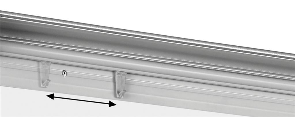 Samostoječa flipchart tabla z belo magnetno površino. Na tablo je možno pritrjevanje z magneti ter pisanje z boardmarkerji za suho brisanje. Ima polico za odlaganje pisal, na zgornji stranici pa univerzalni nosilec za blok papirja velikosti do 70 x 100cm. Tabla ima nastavljiv kot pisalne površine ter je nastavljiva po višini do 180cm. Mobilnost table omogoča pet kolesc z mehkim tekom in zavoro.