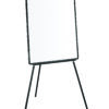 Samostoječa bela flipchart tabla z magnetno površino, možno pritjevanje z magneti in pisanje z boardmarkerji za suho brisanje, polica za odlaganje pisal, na zgorni stranici nosilec za blok velikosti 60x90cm.