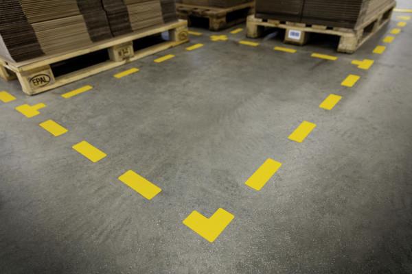Samolepilne talne oznake pomagajo ustrezno označiti in razmejiti različna področja v industriji, skladiščenju in logistiki . Oznake so trpežne, odporne na obrabo in odporne proti zdrsu R9 po DIN 51130.