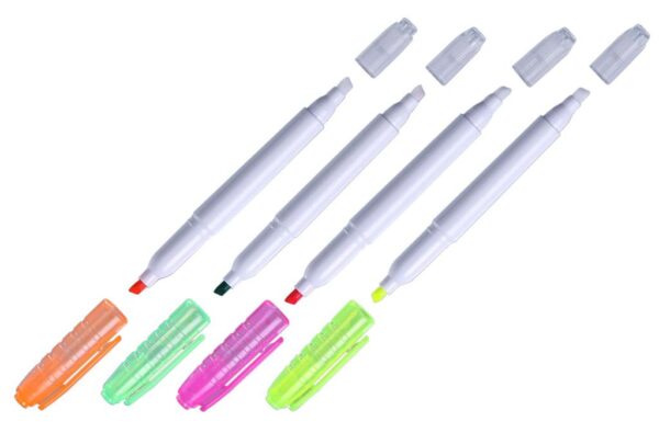 Označevalec besedil A-plus s poševno prirezano konico debeline 1-5mm. Tuš na vodni osnovi z visokim barvnim sijajem je dobro obstojen na svetlobi. Dve konici – ena piše, druga briše.