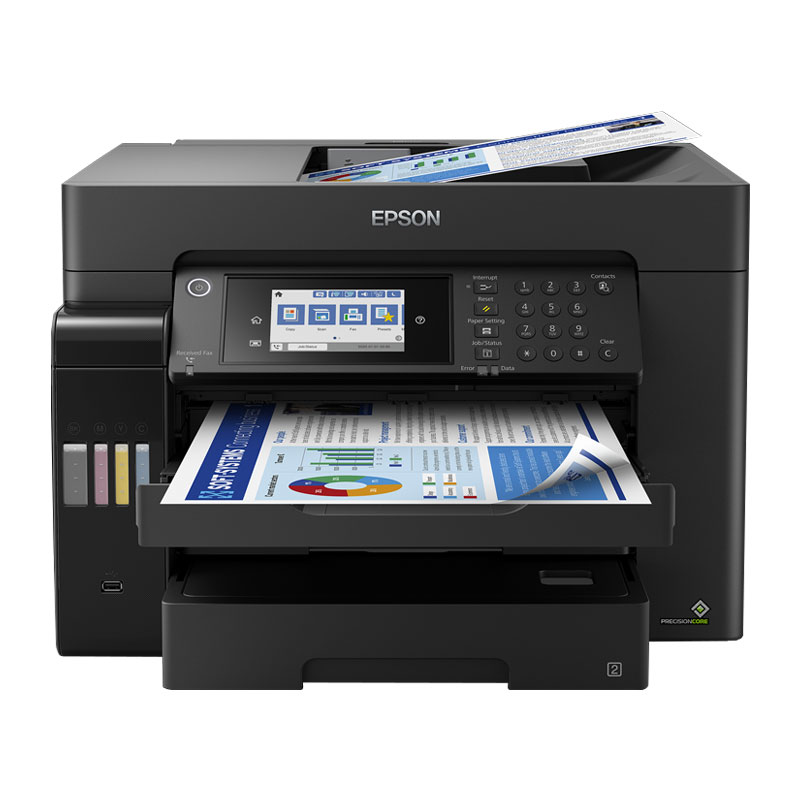 Tiskalnik EcoTank z bogatim naborom funkcij omogoča izvajanje opravil v formatu A3+ z nizkimi stroški na stran. Hitro tiskanje in optično branje, pladnja za vstavljanje papirja s sprednje strani, od katerih vsak sprejme 250 listov, podajanje papirja z zadnje strani (50 listov) ter samodejni podajalnik dokumentov formata A3 (50 listov). Tiskajte, kot želite, z mobilnim tiskanjem, povezavo Ethernet in 10,9-centimetrskim zaslonom LCD na dotik s trdimi tipkami.