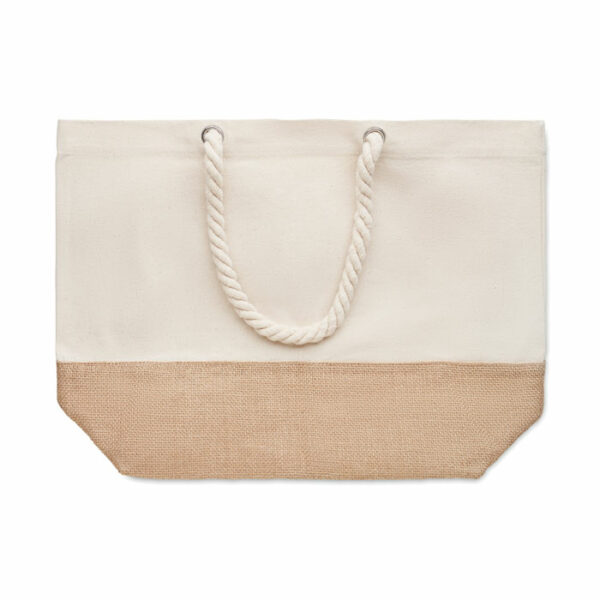 Torba iz bombaža z ročajem iz vrvice in detajlom iz jute.