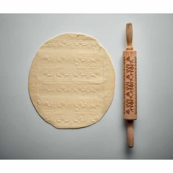 Lesen valjar z vtisnjenim božičnim vzorcem. Okras v valju se bo pojavil v testu vašega peciva kot zabaven okrasni element.