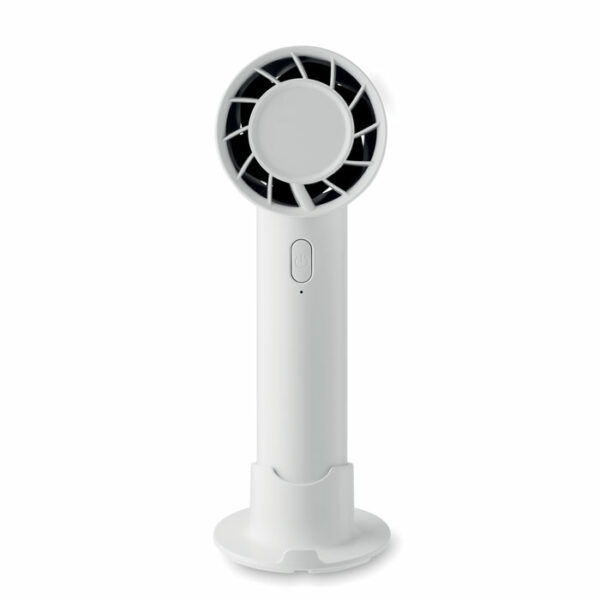Majhen prenosni ventilator z dodatnim namiznim stojalom z možnostjo stojala za telefon, s tremi nastavitvami hitrosti. Polnjenje z USB, polnilna baterija 2000 mAh.