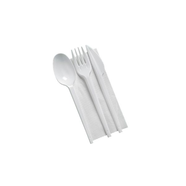 Komplet vsebuje: 1 kos – vilica, nož, žlica, servieta