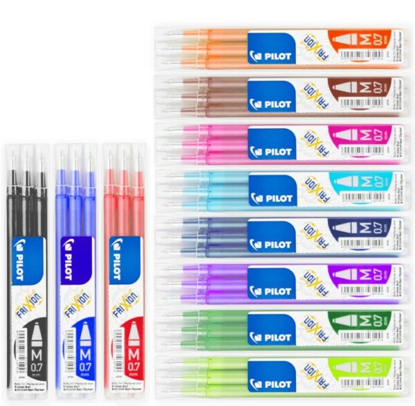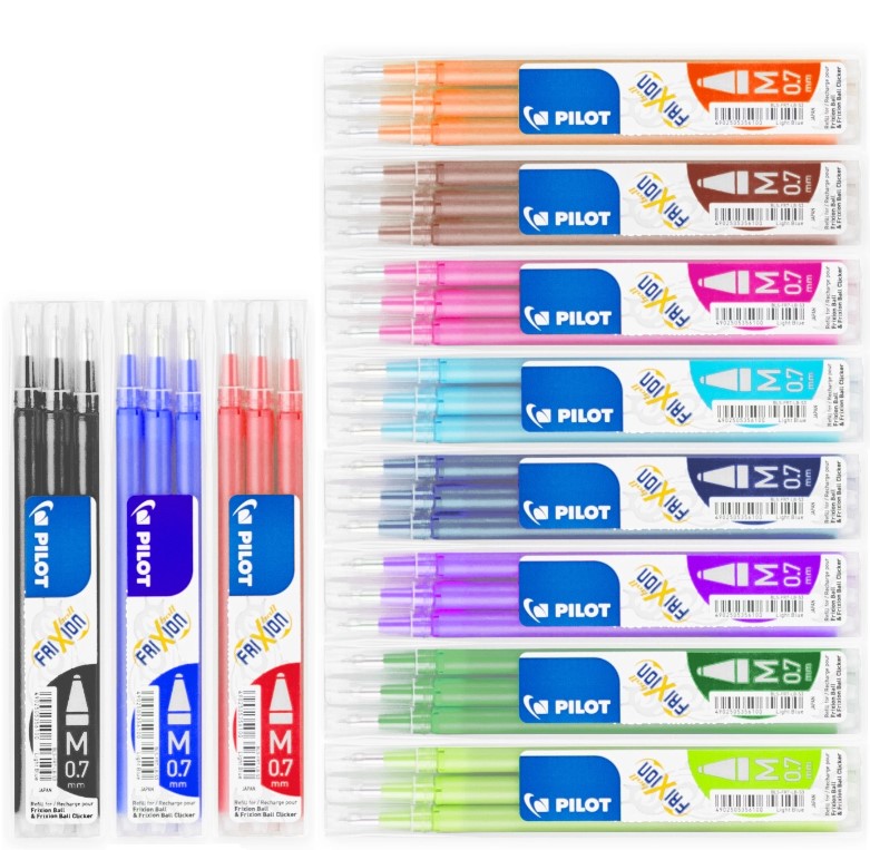 Set treh nadomestnih vložkov s srednjo konico 0,5mm za gel rolerje piši briši: Frixion Ball, Frixion Slim in Frixion Clicker.