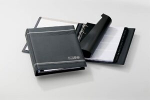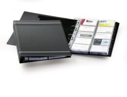 Vložne mape za shranjevanje vizitk s stranskimi luknjami za vlaganje v rinčne mape. Mape so formata A4 in omogočajo shranjevanje 125 vizitk (enostransko vstavljanje) ali 250 vizitk (obojestransko vstavljanje).