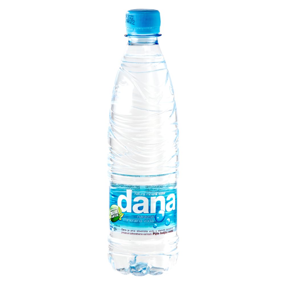 DANA naravna mineralna voda se polni iz izvira Dana na Mirni. Primerna za dieto z malo natrija.