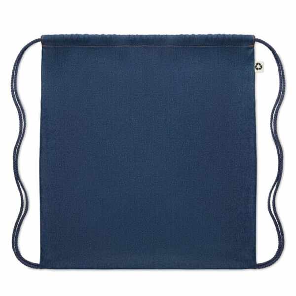 Vrečka nahrbtna z vrvico iz 50 % recikliranega bombažnega barvanega džinsa in 50 % bombaža.