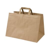 Papirne vrečke so s stranskim zgibom in ravnim dnom. Visoko kvaliteten močan rjav gladek papir, ročaj je izdelan iz 5 x prepognjenega visoko kvalitetnega močnega papirja, lepljen na notranji strani vrečke.
