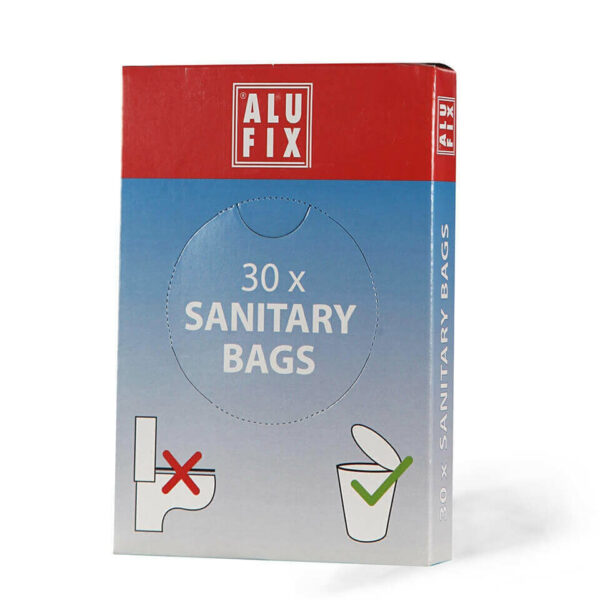 Alufix vrečke za odlaganje so praktične higienske vrečke za diskretno odlaganje rabljenih ženskih higienskih pripomočkov, kot so damski higienski vložki, dnevni vložki in tamponi. Primerne so za uporabo z nosilci.