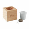 Zeliščni lonec v lesenem ogrodju s semeni mete in z vrtnim kompostom.