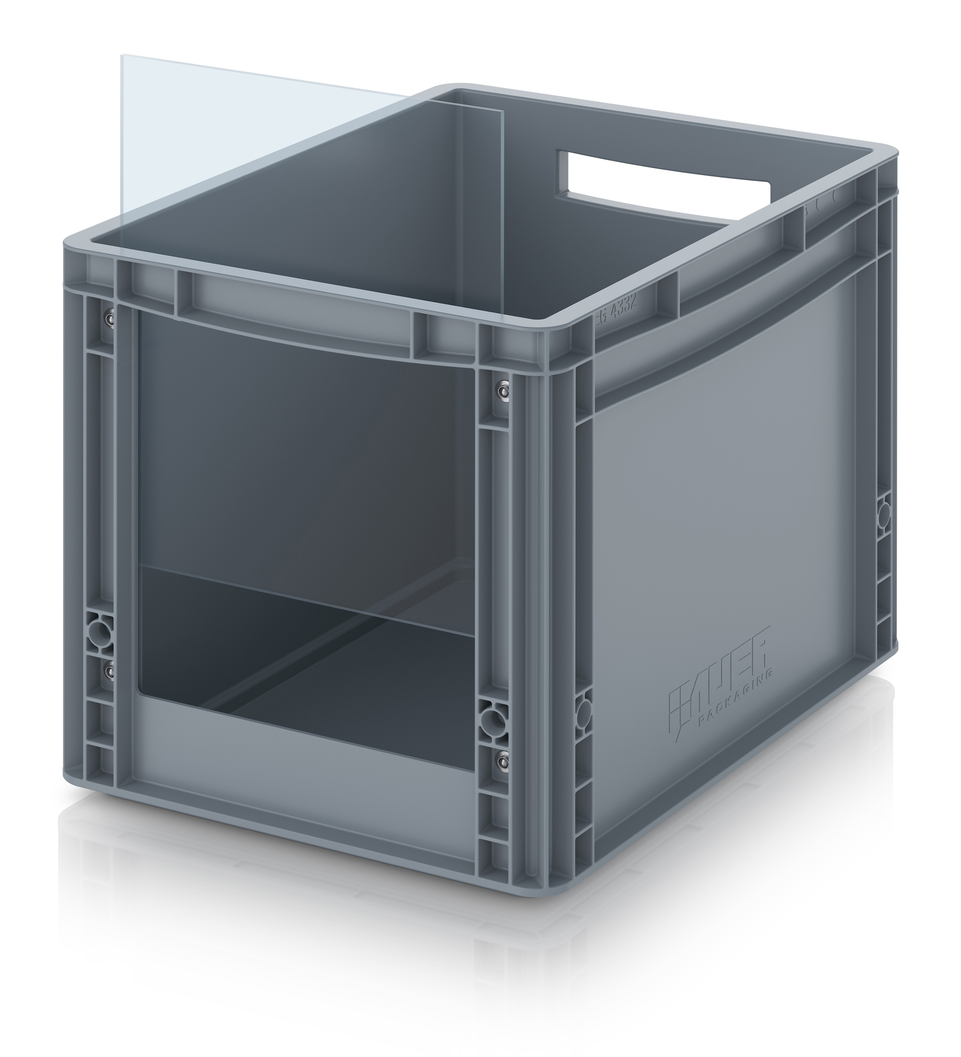 SKLADIŠČNI ZABOJ V EVROVELIKOSTI, ČELNA STRAN Z OKENCEM IZ AKRILNEGA STEKLA