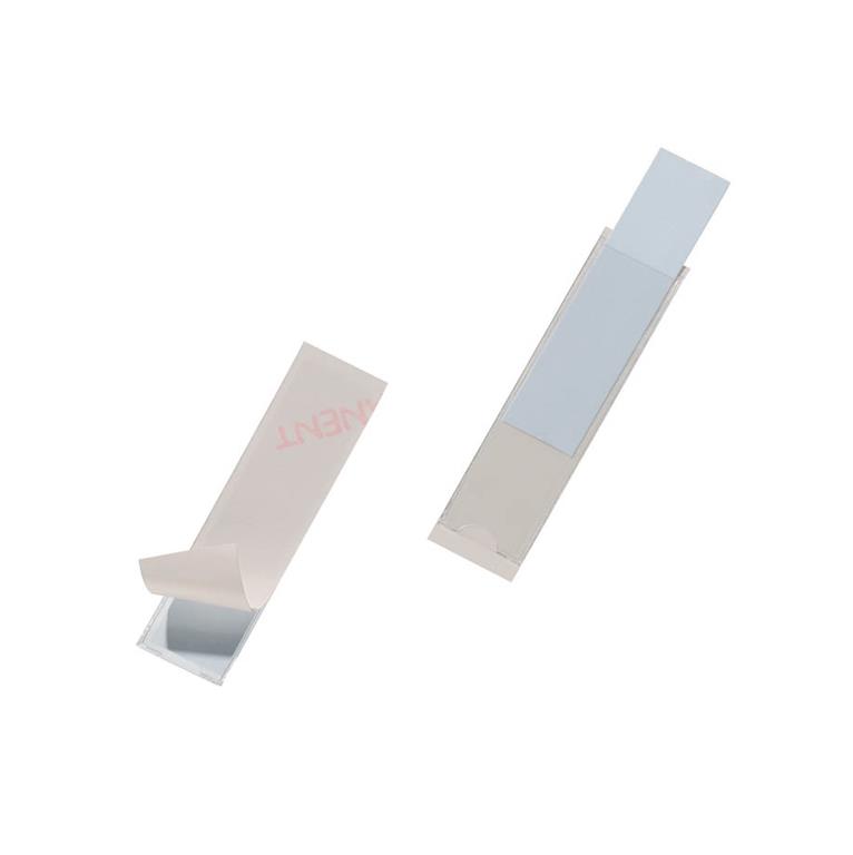Samolepilni žepek iz PVC za shranjevanje in označevanje dokumentov, prazni vložni lističi priloženi, možnost tiskanja z DURAPRINT® programsko opremo, odprt na ožjem delu.