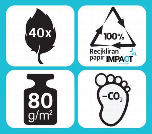 100 % recikliran, certificirano okoljsko nevtralni papir, je izdelan brez optičnih in klorovih barvil.