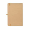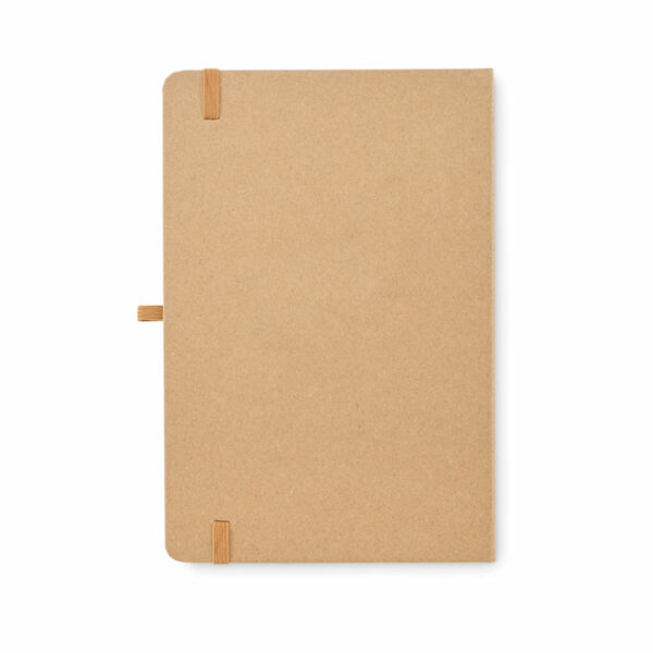 Zvezek A5 s trdimi platnicami iz kartona. 160 črtanih strani recikliranega papirja (80 listov), 25 listov samolepilnih listkov in 25 blokov za beležke. Elastični trak za zapiranje, s katerim lahko spremljate vaše zadnje zapiske in zanka za pisalo.