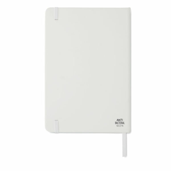 Zvezek A5 je antibakterijsko obdelan na mehkem PU ovitku. Premaz vsebuje poseben dodatek (nano srebro), ki preprečuje bakterijam, da bi se naselile na površini. 192 črtnimi stranmi (96 listov). ISO 22196.