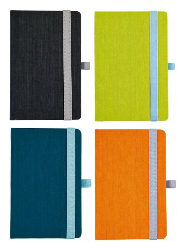 Zvezek A5 formata prihaja v različnih atraktivnih barvah in je opremljen z gumico v barvi beležke, ki preprečuje njeno odpiranje. Notranjost je opremljena s stranjo, kamor lahko vpišete osebne podatke, ter z listi za delanje beležk.
