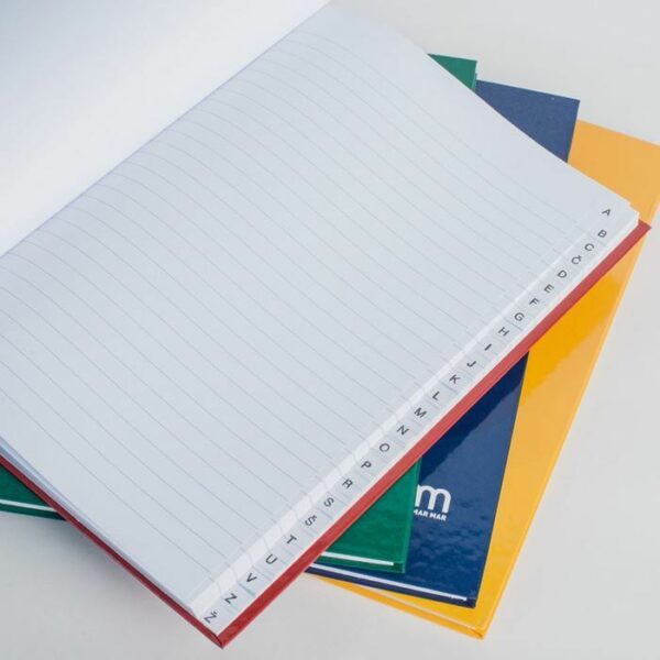 Kvalitetni zvezki z ob strani izsekano in natisnjeno abecedo A-Ž , s trdimi platnicami izdelani iz kakovostnega 60 g papirja in trpežno enobarvno trdo plastificirano platnico. Listi so dovolj premazni, da ne prepuščajo črnila, hkrati pa dovolj vpojni, da se črnilo ne razmaže. Primerni so za pisarno, šolo, domače zapiske ali pa za uporabo pri različnih dejavnostih in krožkih.